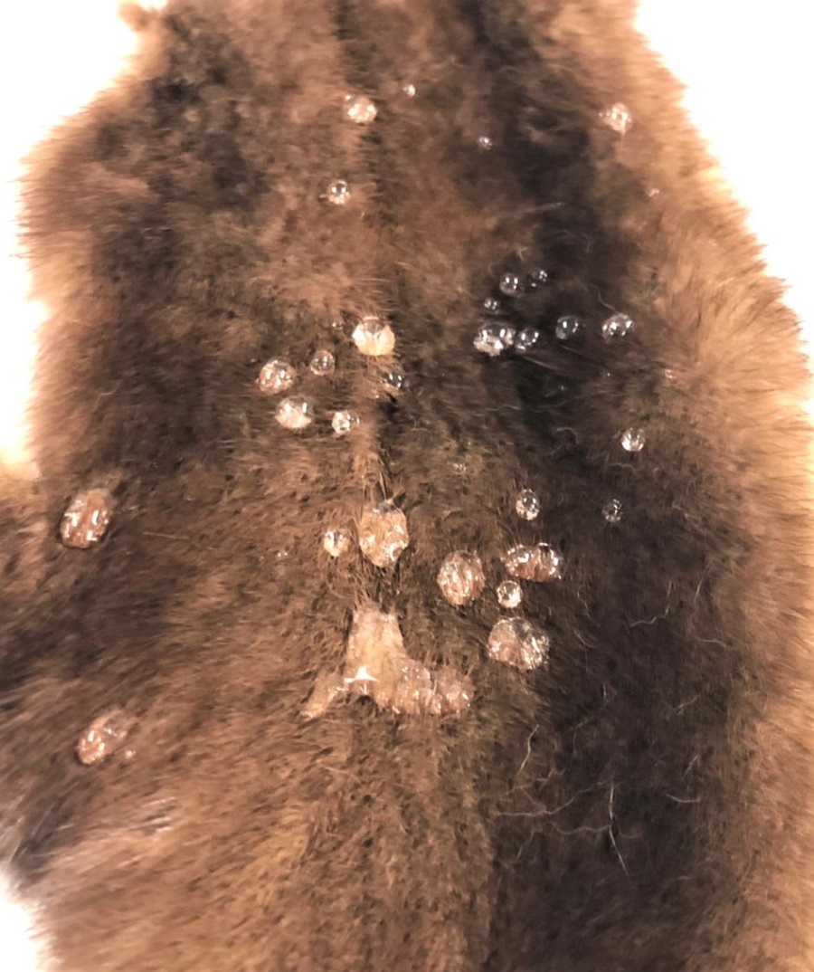 | ほとんどの毛皮は、少々の雨や雪にぬれても、刺毛と綿毛が水分を |