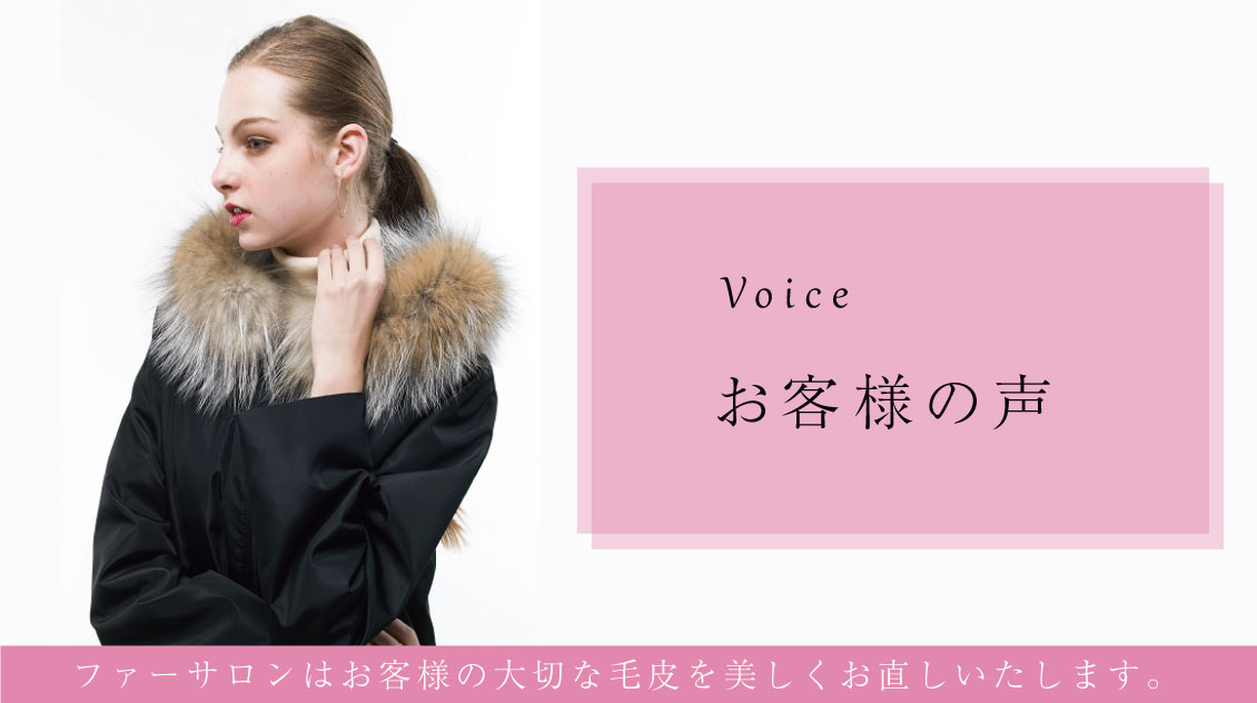 | ■ お客様の声 | ■ アクセス | ■ リフォーム受付イメージ | ■ 毛皮の種類 | ■ リフォーム紹介ムービー | ||||||||||||